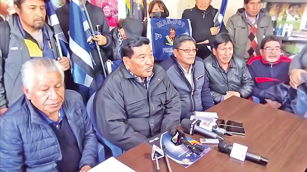 MAS. Los dirigentes de la organización política, ayer, en una conferencia de prensa en La Paz. MAS. Los dirigentes de la organización política, ayer, en una conferencia de prensa en La Paz. Foto: Captura de video