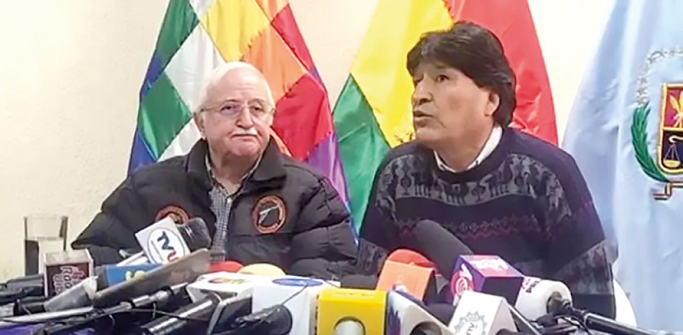 INVESTIGACIÓN. El exministro Echazú junto al expresidente Morales, en una reciente conferencia de prensa. INVESTIGACIÓN. El exministro Echazú junto al expresidente Morales, en una reciente conferencia de prensa. Foto: Archivo