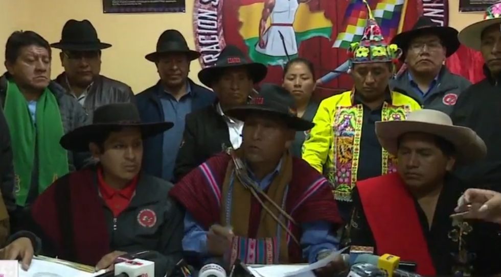 “La Ccutcb convocó a las organizaciones sociales del Pacto de Unidad a recuperar el instrumento político del MAS-IPSP. Vamos a llamar a una cumbre a todos los ejecutivos departamentales, en La Paz, para elaborar la convocatoria del nuevo congreso del MAS”, indicó en conferencia de prensa.