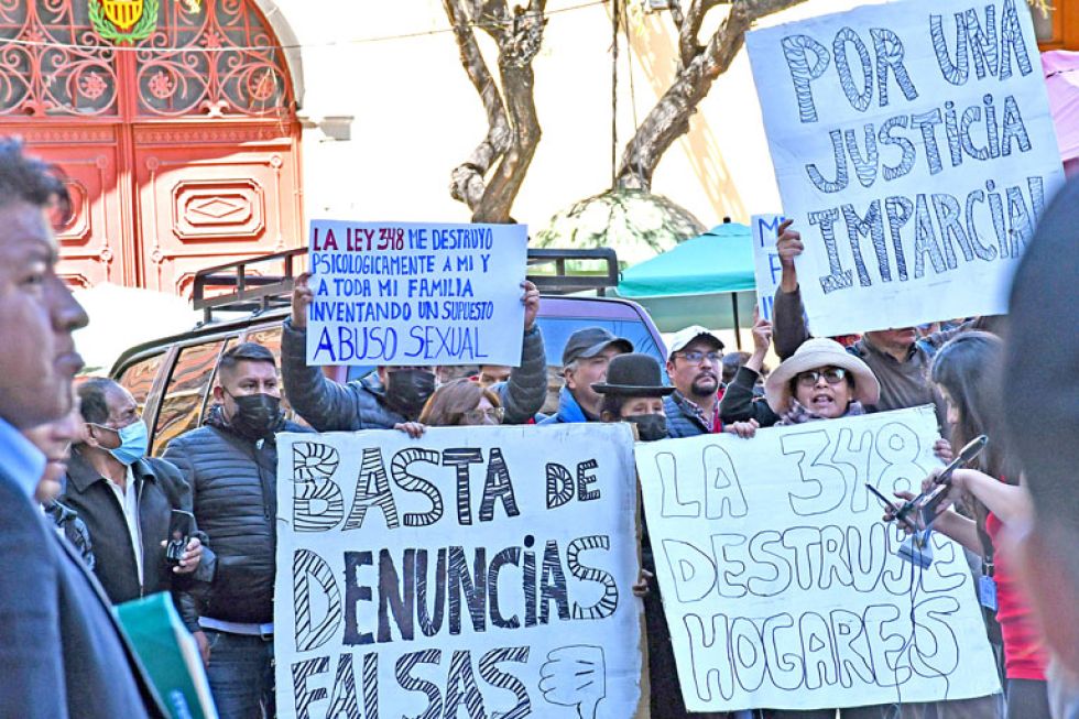 LA PAZ. Movilización en contra de la Ley Integral para Garantizar a las Mujeres una Vida Libre de Violencia. Foto: APG El Gobierno propuso realizar un debate de la Ley 348 Integral para Garantizar a las Mujeres una Vida Libre de Violencia para avanzar y no dejar en la impunidad a los responsables de estos ilícitos, menos aun poniendo en duda la declaración de las víctimas de violencia sexual.