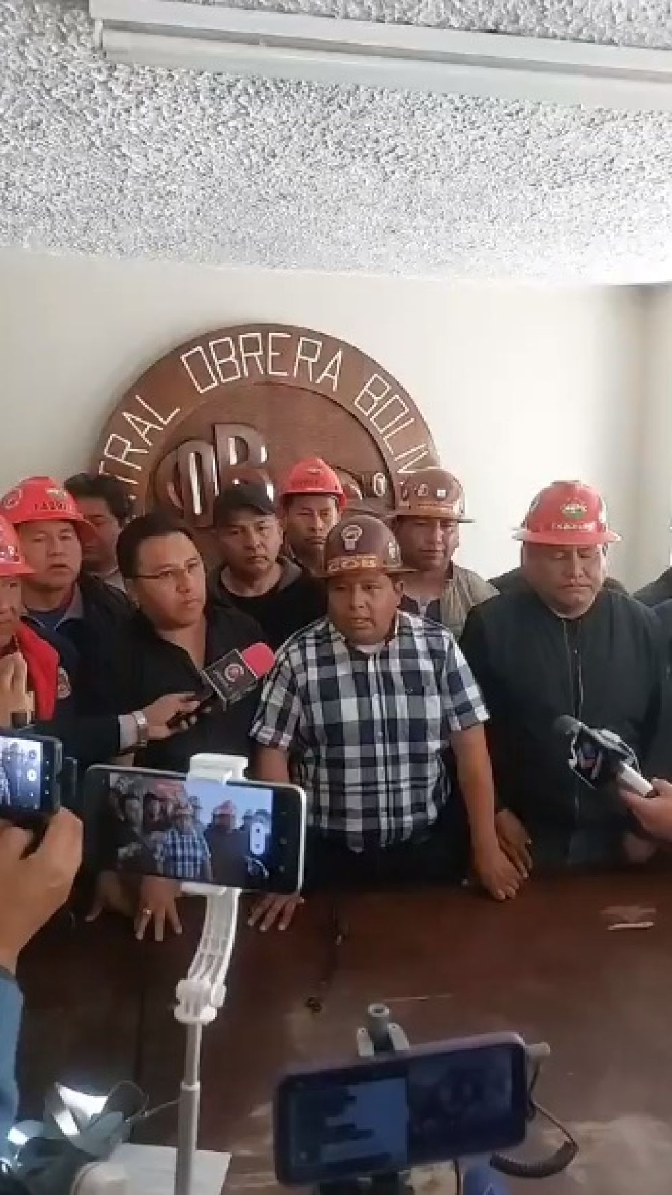 La conferencia de prensa de este tarde de los dirigentes de la COB. La conferencia de prensa de este tarde de los dirigentes de la COB. Foto: Captura de video