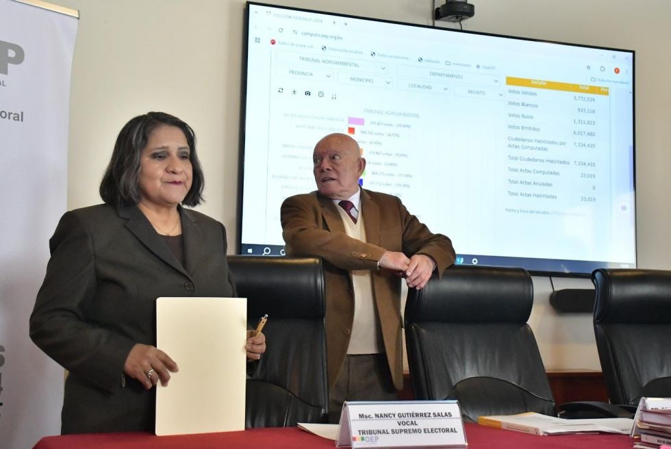 “Conviene recordar que no tuvimos en este proceso, ninguna mesa anulada (…). Además, no existe ante este tribunal, ningún recurso de apelación o nulidad, para no poder llevar adelante este cómputo nacional. Como ya hemos informado, el día lunes 30 haremos la entrega de las credenciales a todos los elegidos, acto que se llevará a cabo en el Banco Central de Bolivia (BCB) de La Paz”, anunció.