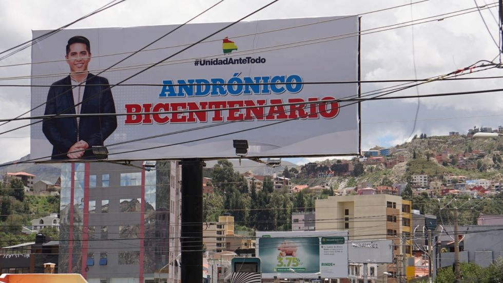 En pasados días, apareció en la zona de Achumani de La Paz una gigantografía con la imagen del senador “evista” junto con la leyenda de “Andrónico Bicentenario” y “Unidad ante todo”.