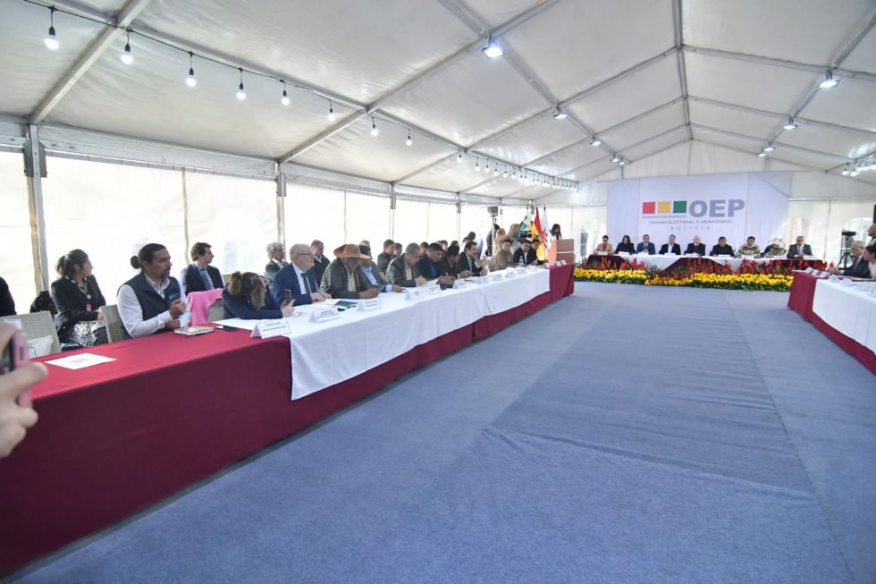Los delegados de los partidos acordaron designar técnicos que abordarán el tema del financiamiento del TREP en una reunión programada para las 16:00. Foto: APG El Encuentro Nacional por la Democracia, convocado para fortalecer las elecciones generales de agosto, entró en cuarto intermedio hasta las 18:00 de este lunes. El tema central de la agenda es el financiamiento del Sistema de Transmisión de Resultados Electorales Preliminares (TREP).