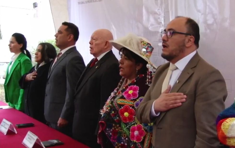 Los vocales del Tribunal Supremo Electoral en el acto inaugural de este domingo. Foto: Captura de video El Tribunal Supremo Electoral (TSE) inauguró la mañana de este domingo la jornada electoral en Bolivia, con un acto en sus instalaciones de la ciudad de La Paz.