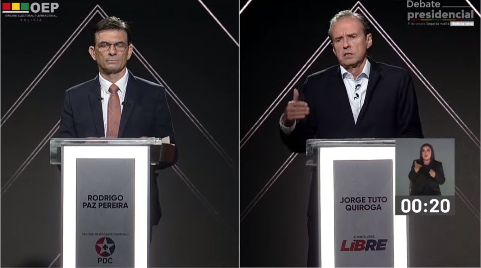 El debate presidencial rumbo al balotaje del 19 de octubre continuó con el eje sobre Medidas de Contención Social, donde los candidatos a la Presidencia, Rodrigo Paz (PDC) y Jorge “Tuto” Quiroga (Libre), expusieron sus estrategias para enfrentar los efectos de la crisis, proteger a las familias bolivianas y fortalecer el tejido social.