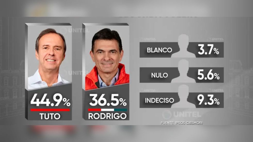 A tan solo una semana de la segunda vuelta electoral fijada para el 19 de octubre, la última encuesta de Ipsos Ciesmori para la red Unitel revela que Jorge Tuto Quiroga, candidato presidencial de la Alianza Libre, amplía su ventaja sobre Rodrigo Paz, del Partido Demócrata Cristiano (PDC).