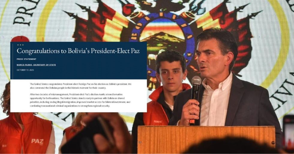 “Felicitamos al pueblo boliviano en este momento histórico para su país”, señaló Rubio, quien destacó que el triunfo de Paz abre una nueva etapa en la relación entre ambas naciones.