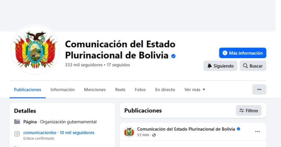 La página también cambió su foto de perfil por el escudo de Bolivia y eliminó su foto de portada.