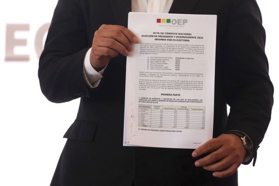 El Tribunal Supremo Electoral (TSE) proclamó este lunes oficialmente la victoria del Partido Demócrata Cristiano (PDC) en la segunda vuelta del 19 de octubre, con lo que Rodrigo Paz Pereira es el presidente electo y Edmand Lara Montaño el vicepresidente electo.