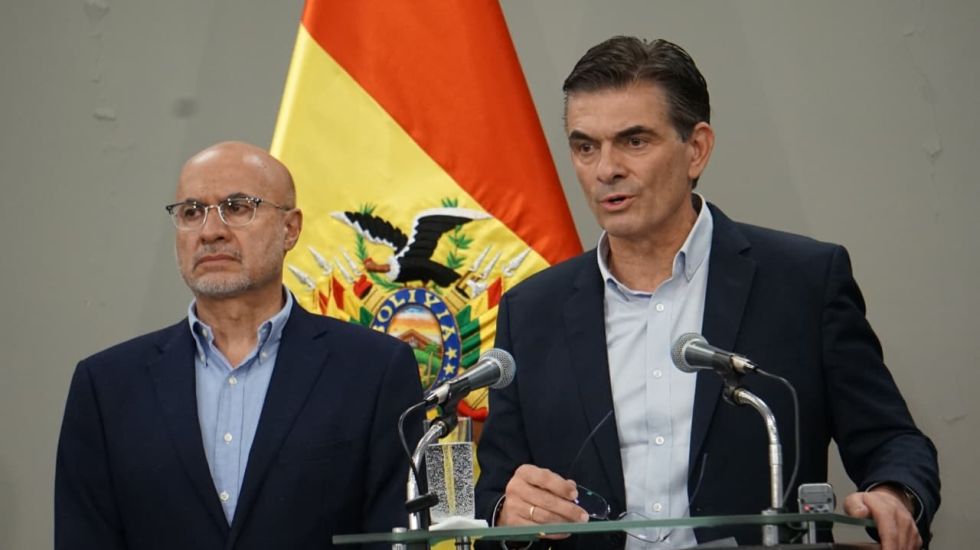 El presidente Rodrigo Paz brindó este domingo un mensaje junto con el ministro de la Presidencia, José Luis Lupo, luego de una reunión de gabinete en la Casa Grande del Pueblo.