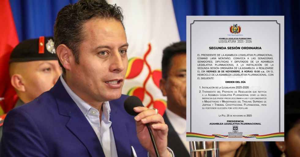 El vicepresidente Edmand Lara, en su calidad de presidente nato de la Asamblea Legislativa Plurinacional, convocó a senadores y diputados a la segunda sesión ordinaria de la Asamblea, programada para el viernes 28 de noviembre a las 10:00 en el hemiciclo del Legislativo.