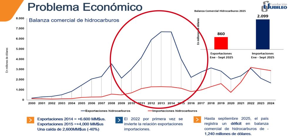 DATOS. La balanza comercial de hidrocarburos muestra la época de bonanza que pudo haber sido aprovechada para retirar el subsidio. Foto: Jubileo Pese a los anuncios de protestas, ningún sector niega que el retiro a la subvención a los hidrocarburos debía darse en algún momento. Hay reclamos por la falta de coordinación, el shock para las familias más desfavorecidas, el recorte del gasto público que aún no se materializa, pero el golpe debía llegar.