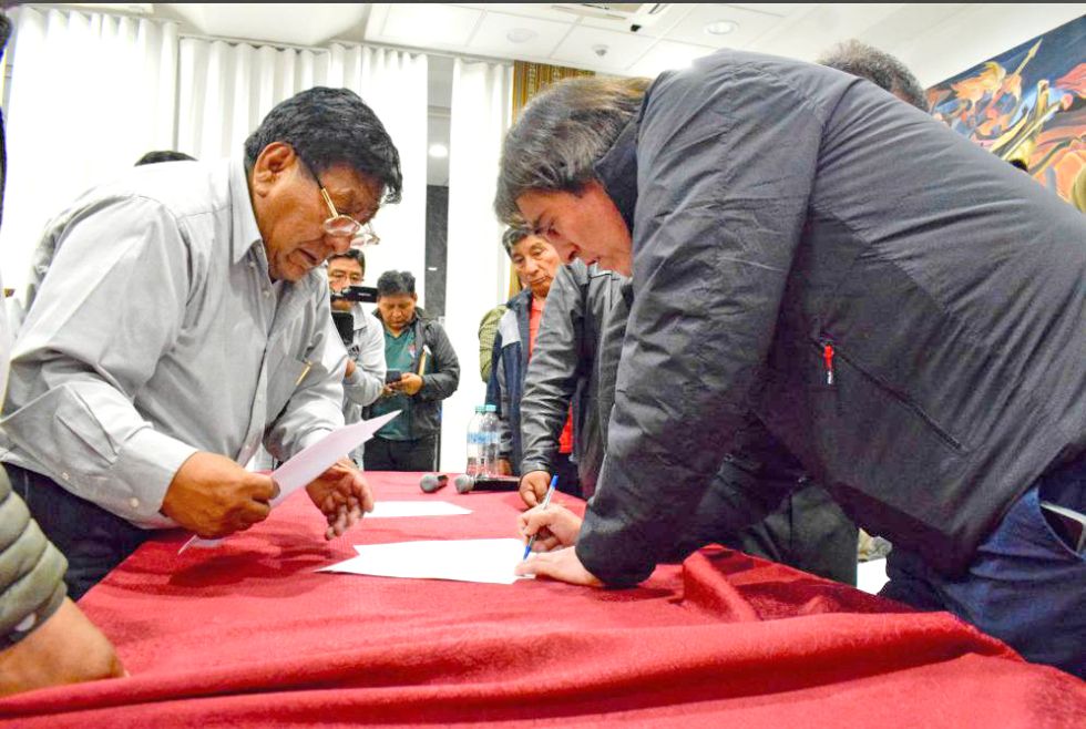 Tras cinco horas de negociaciones, a las 23:15 autoridades del Gobierno, acompañadas de dirigentes de la Confederación Sindical de Choferes de Bolivia, anunciaron un acuerdo que desactiva el anunciado paro y bloqueos de los transportistas del país.
