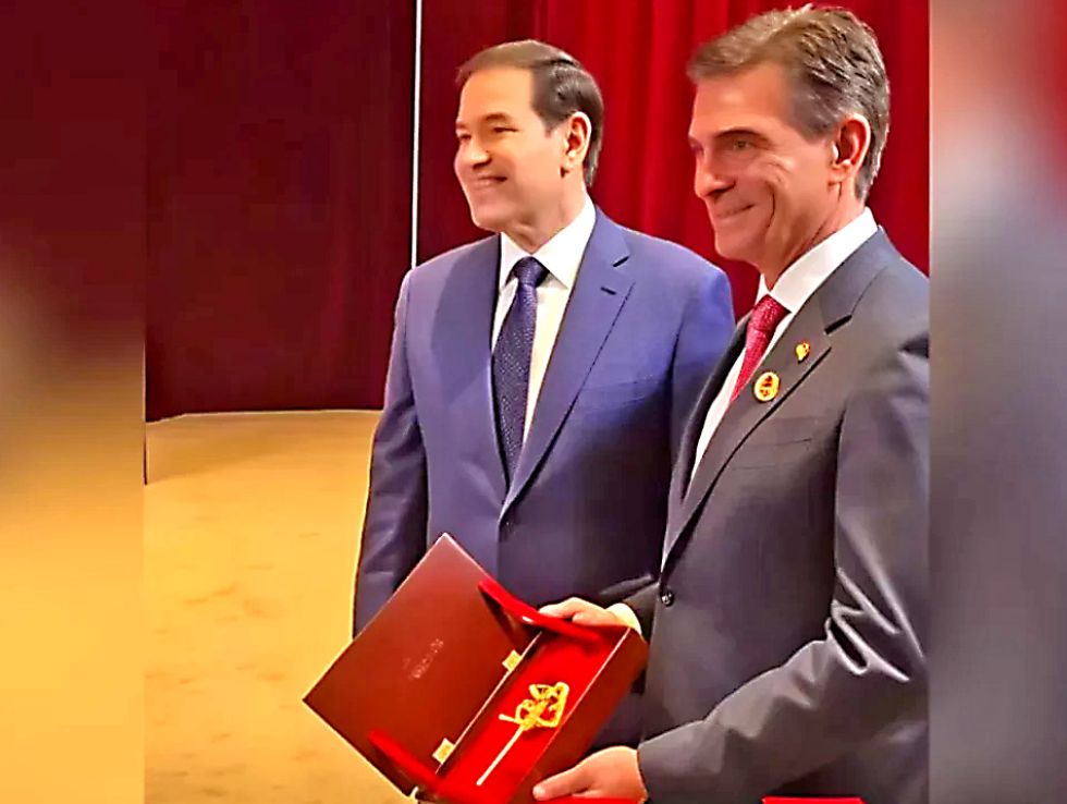 MIAMI. Después de 36 años, el crucifijo de oro vuelve a manos de la familia Paz. Foto: Captura de video El presidente de Bolivia, Rodrigo Paz, afirmó que América será el continente “más poderoso del mundo” si se aplica el acuerdo firmado el sábado, con Estados Unidos, en el marco de la cumbre “Escudo de las Américas”.