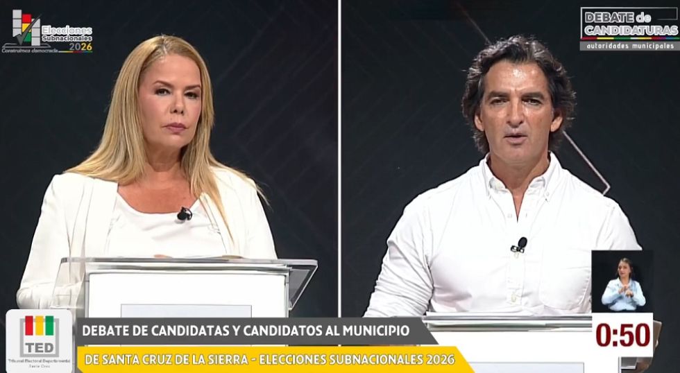 Angélica Sosa (i) y Manuel Saavedra en el debate por la Alcaldía de Santa Cruz. Foto: Captura de video El primer bloque del debate entre candidatos a la Alcaldía de Santa Cruz de la Sierra estuvo marcado por acusaciones directas, cuestionamientos sobre corrupción y cruces verbales entre postulantes, principalmente entre Angélica Sosa y Manuel “Mamén” Saavedra.