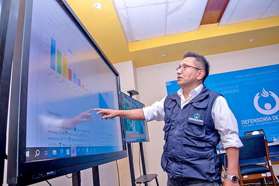 COMICIOS. El defensor del Pueblo, Pedro Callisaya, brinda un informe sobre la jornada electoral. Foto: Defensoría del Pueblo El centro de monitoreo de la Defensoría del Pueblo registró 353 casos en la jornada electoral, muchos de ellos por temas administrativos.