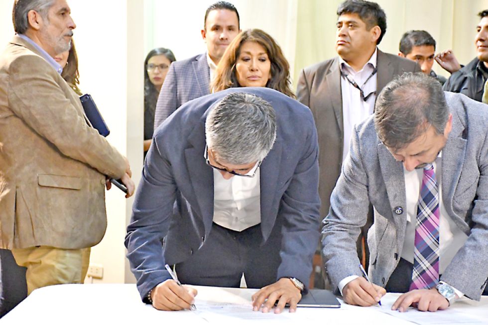 El acuerdo fue firmado luego del diálogo sostenido la tarde de este jueves entre los dirigentes de las distintas federaciones de transportistas de La Paz y los ministros de la Presidencia, José Luis Lupo; Obras Públicas, Mauricio Zamora; Economía, José Gabriel Espinoza; Gobierno, Marco Oviedo, y de Hidrocarburos, Mauricio Medinaceli.