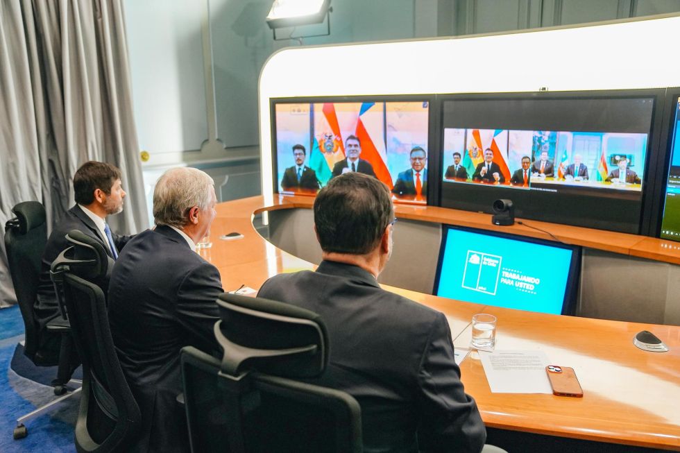 En la reunión virtual estuvieron acompañados por el ministro de Relaciones Exteriores chileno, Francisco Pérez Mackenna; el secretario general de Política Exterior de Chile, Frank Tressler; el canciller boliviano, Fernando Aramayo, y el ministro de gobierno de Bolivia, Marco Antonio Oviedo.