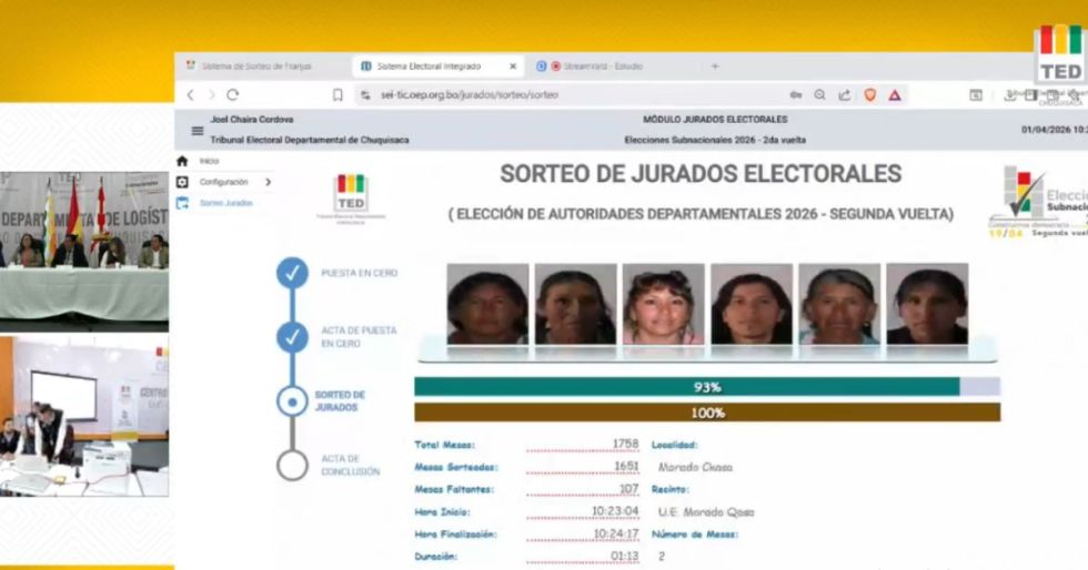 “Aquellas personas que se están enterando de que son jurados electorales, mil felicidades. Asuman ese rol con compromiso, con responsabilidad, porque ustedes van a ser autoridades ese día”, precisó Favio Chacolla, presidente del TED Chuquisaca.