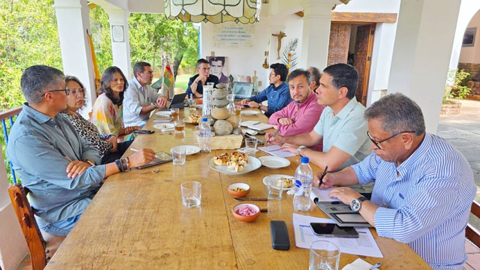 Sentados en una mesa de la hacienda El Picacho, Paz coordinó con nueve de sus ministros de manera presencial y con los otros de manera virtual, según se observa en las imágenes compartidas desde Tarija.