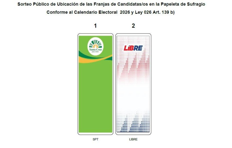 Como parte del calendario electoral, se realizó el sorteo de 53.772 jurados electorales y se definió la ubicación de los candidatos en la papeleta: Otto Ritter, de Santa Cruz Para Todos, aparecerá en el lado izquierdo, mientras que Juan Pablo Velasco, de la Alianza Libre, ocupará el espacio derecho.
