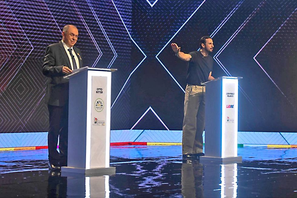 En Santa Cruz, Juan Pablo Velasco (Libre) y Otto Ritter (Santa Cruz Para Todos) debatieron en la Fexpocruz en un encuentro que arrancó con exigencias de disculpas y derivó en cuestionamientos cruzados sobre alianzas y planes de gobierno. Velasco pidió a Ritter disculpas públicas hacia su candidata a vicegobernadora, Paola Aguirre, por expresiones calificadas de machistas. Ritter respondió que no tenía nada de qué disculparse.