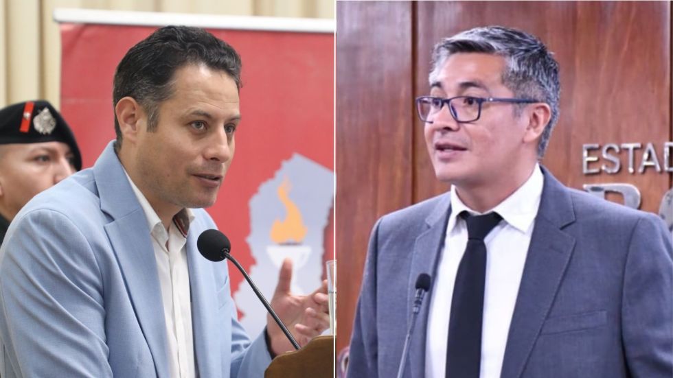 El vicepresidente Edmand Lara (i) convocó a la interpelación al ministro José Gabriel Espinoza. Foto: Composición Correo del Sur El presidente nato de la Asamblea Legislativa, Edmand Lara, convocó a una sesión de interpelación contra el ministro de Economía, José Gabriel Espinoza, para la mañana de este viernes.