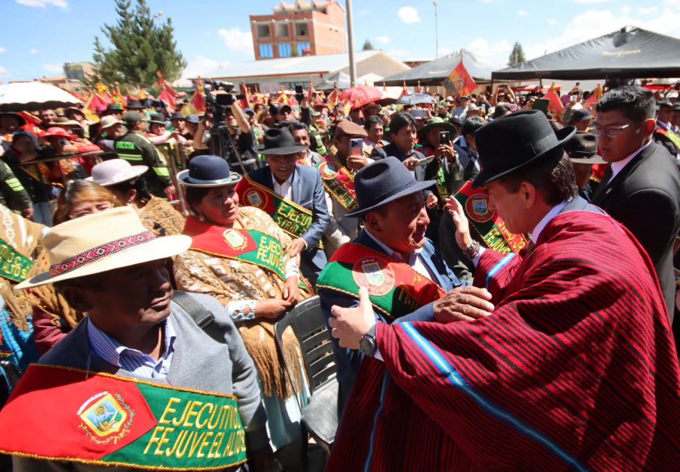 Durante el acto, Paz entregó al presidente de la Fejuve del Distrito 8 las llaves de una vagoneta, gestionada –según dijo– por el ministro de Gobierno, Marco Oviedo. quien lo acompañó. También entregó computadoras con la ministra de Educación, Beatriz García y, finalmente, prometió construir una sede para la Fejuve sur.