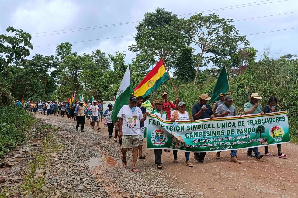 La madrugada de este domingo, unos 300 indígenas y campesinos de Pando y Beni llegaron al municipio de Caranavi en su ruta hacia La Paz. El sector exige abrogar la Ley 1720, que autoriza la reconversión de la pequeña a mediana propiedad.
