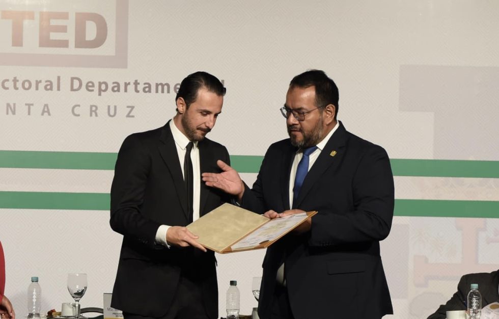 El gobernador electo de Santa Cruz, Juan Pablo Velasco, recibió este martes su credencial del Tribunal Electoral Departamental (TED). En el mismo acto, también fue acreditada la vicegobernadora Paola Aguirre.