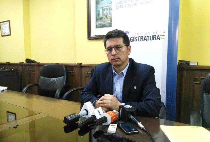 El presidente del Consejo de la Magistratura, Wilber Choque, durante la rueda de prensa. Foto: CORREO DEL SUR El presidente del Consejo de la Magistratura, Wilber Choque, durante la rueda de prensa. Foto: CORREO DEL SUR