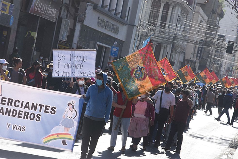 Por la mañana se realizó una “marcha en defensa del progreso de Cochabamba y en defensa del voto”, que partió de diferentes puntos de la ciudad y concentró en la plaza principal 14 de Septiembre.