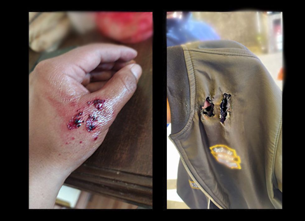 El impacto de juegos pirotécnicos en la mano y luego a la altura del pectoral menor izquierdo, donde dejaron una quemadura y perforación de una chamarra, pusieron en evidencia que el objetivo de los atacantes era provocar un daño físico al periodista que registraba el asalto al edificio de la Facultad de Tecnología de la USFX con una cámara de teléfono móvil.