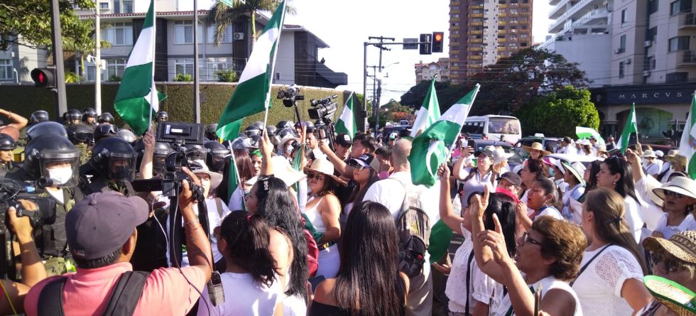 Una nutrida marcha de mujeres universitarias de la Universidad Autónoma Gabriel René Moreno (Uagrm) exigió este viernes la liberación del gobernador Luis Fernando Camacho en el segundo anillo de Santa Cruz, donde se registraron escenas de tensión por la presencia de un fuerte contingente de la Policía, que impidió el paso de los manifestantes por cercanías del Comando Departamental.