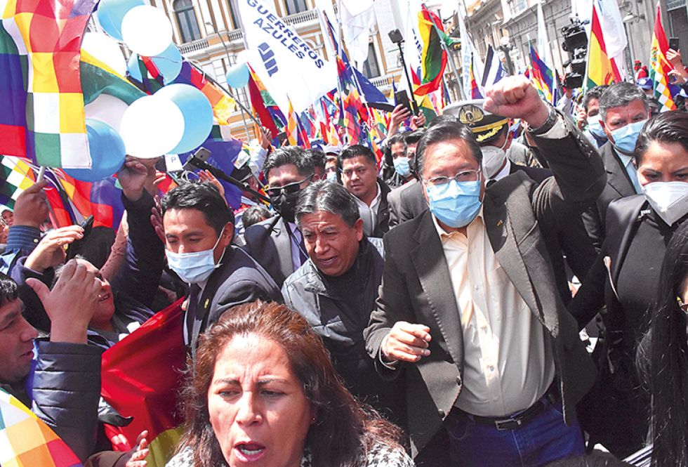 BOLIVIA. El presidente Luis Arce (Segundo derecha) durante un acto de concentración masiva. BOLIVIA. El presidente Luis Arce (Segundo derecha) durante un acto de concentración masiva. Foto: APG
