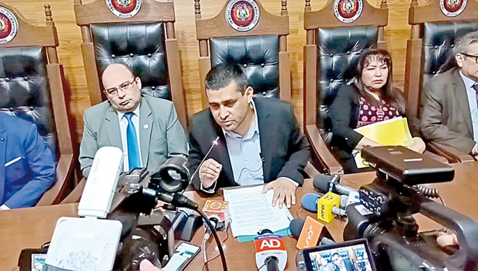 Los parlamentarios de la oposición y los del ala “evista” del MAS que participaron de la reunión con el presidente de la Asamblea Legislativa Plurinacional (ALP), David Choquehuanca, rechazaron la prórroga del mandato de las autoridades judiciales y anunciaron un juicio de responsabilidades contra los magistrados del TCP.