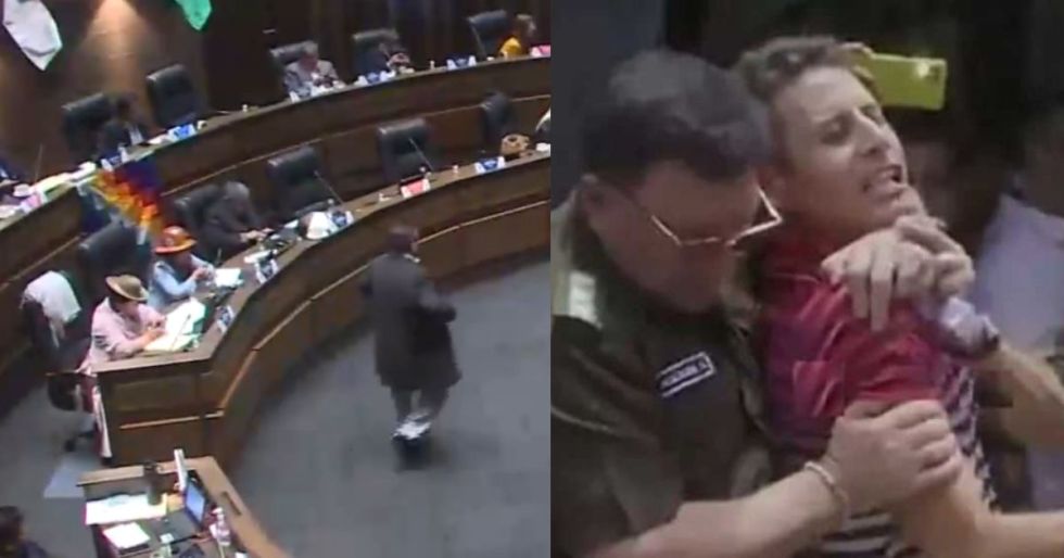 La mañana del pasado miércoles, se registró la agresión de Holguín contra Lara, a minutos de una conferencia de prensa. El hecho que fue grabado por los medios que estaban en las oficinas de la Felcc cruceña.