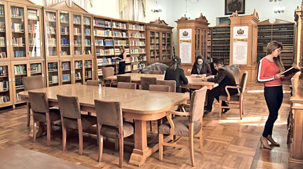 La Biblioteca “Edgar Oblitas Fernández”, además, presentó el nuevo sistema implementado en la página web del TSJ (www.tsj.bo) que permitirá consultar vía virtual la existencia de casi 9 mil libros, además de documentos históricos, colecciones completas de la Gaceta Judicial, permitiendo así a estudiantes, profesionales y sociedad en general llegar hasta estos ambientes para revisar el material en físico, la biblioteca abrirá sus puertas para las consultas en horarios de oficina, de 8:00 a 12:00 y de 14:30 a 18:30, en calle Luis Paz N° 352.