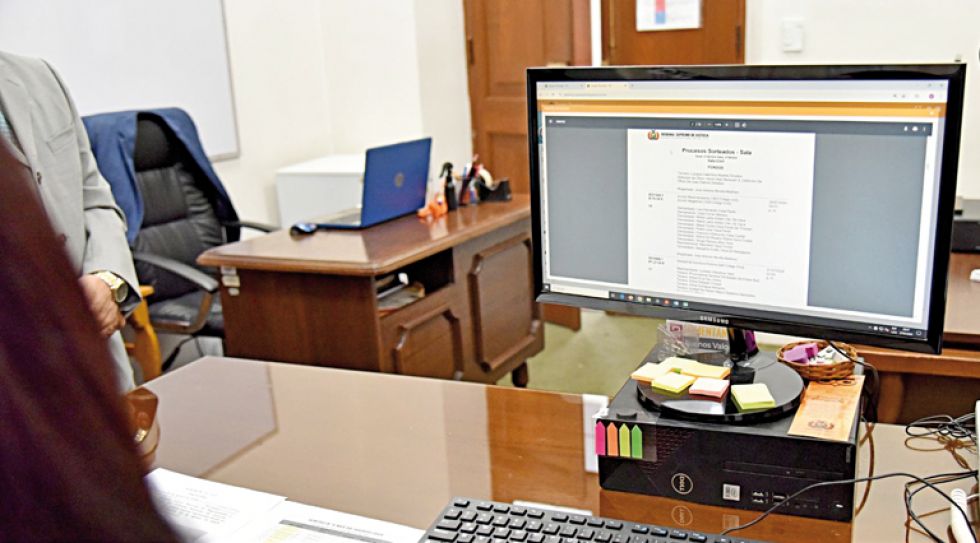 “Hemos entregado el nuevo Sistema Único de Gestión Procesal al público para que exista la posibilidad de que las partes del proceso puedan presentar memoriales sin la necesidad de trasladarse a la ciudad de Sucre”, sostuvo Jaimes luego de la prueba piloto en la Sala Plena.
