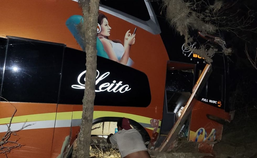Un accidente se registró la madrugada de este martes en la carretera Santa Cruz-Sucre, cerca de la población de Aiquile. Un bus de la empresa Tequila Pluss se salió de la ruta y chocó con barras metálicas de protección.