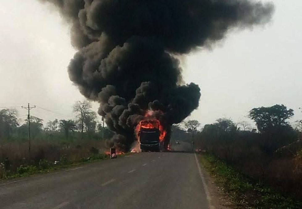 Arde un bus en plena carretera Santa Cruz - Trinidad; los pasajeros lograron escapar