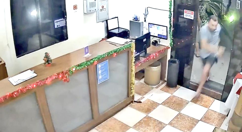 De acuerdo con la denuncia, tres delincuentes llegaron al lugar a bordo de un vehículo, anunciaron el robo y actuaron con rapidez. Las imágenes muestran a uno de los asaltantes acercándose armado al ingreso del hotel y amenazando a las personas presentes. Uno de ellos, que vestía una camiseta azul, apuntó con un arma de fuego a un empleado del hotel, quien terminó entregándole su anillo de bodas. En la escena también se encontraba una mujer con un niño en brazos, mientras otros testigos observaban el asalto en estado de shock. El atraco duró poco más de un minuto.