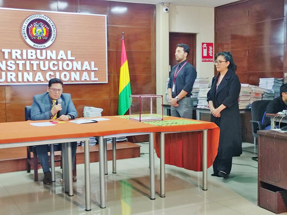 SUCRE. El presidente de la Comisión de Admisión, Edson Dávalos, en el acto de sorteo, este miércoles. Foto: Correo del Sur El Tribunal Constitucional Plurinacional (TCP) hizo un sorteo extraordinario de 144 expedientes rezagados que fueron abandonados entre 2020 y 2004 en los despachos de algunos de los cinco magistrados prorrogados, pese a haber sido sorteados. No tenían sentencia y se incurrió en retardación de justicia, según las actuales autoridades.