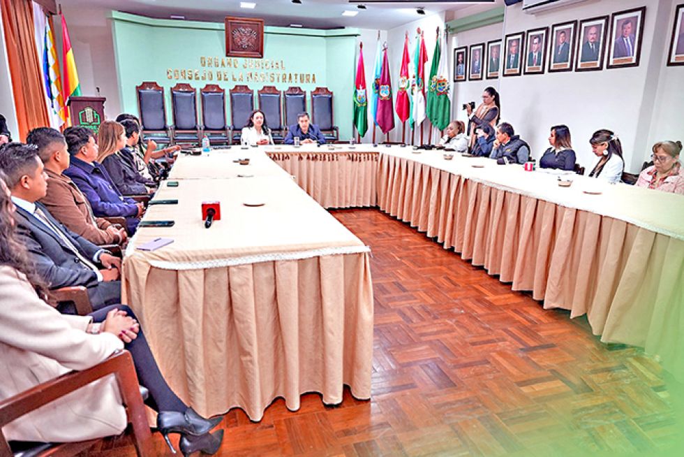 SUCRE. La consejera Paula Araoz y el presidente Carlos Spencer en un encuentro con periodistas. Foto: Consejo de la Magistratura El Consejo de la Magistratura apunta a conseguir un mayor presupuesto para el Órgano Judicial que garantice el incremento de al menos 300 jueces a los 1.203 que tiene actualmente, además de avanzar en el nombramiento de servidores especializados en una sola materia y no mixtos, primero en las capitales de departamento y después en las provincias. Así lo anunció su presidente, Carlos Spencer, en un diálogo con los periodistas en Sucre.