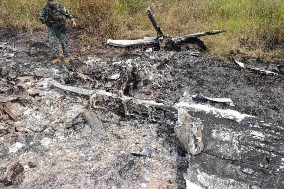 Al llegar, los equipos constataron que la aeronave estaba totalmente incinerada, además, encontraron restos de víveres quemados y varios bidones de combustible.