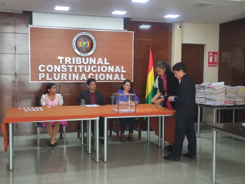 El Tribunal Constitucional Plurinacional (TCP) realizó este jueves el séptimo sorteo público de 180 causas para tres magistrados que conforman la misma cantidad de salas.