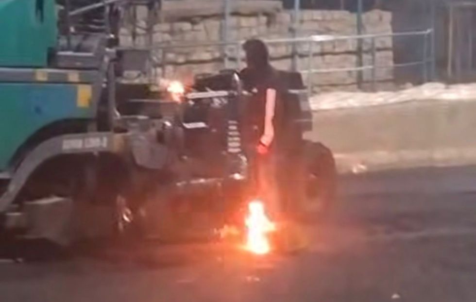 Frustran intento de incendio a maquinaria para asfaltado en La Paz y capturan a un joven