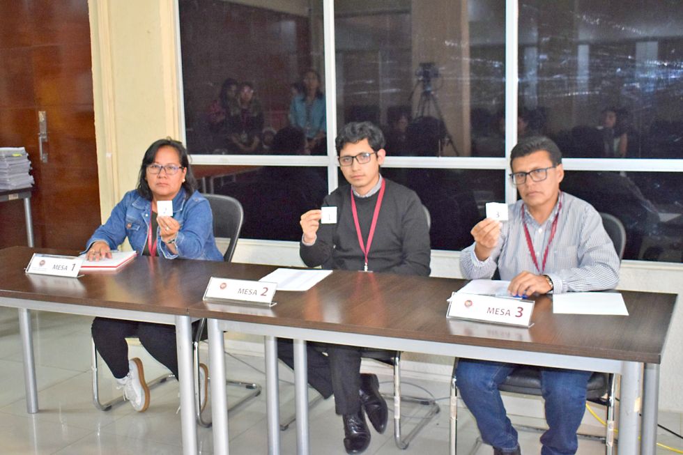 SUCRE. Delegados de las tres salas en el sorteo público de 60 expedientes, el viernes. Foto: Correo del Sur Cada magistrado del Tribunal Constitucional Plurinacional (TCP), tendría que resolver 12 causas por día para reducir la mora procesal de casi 19.000 expedientes; los cuatro de los nueve magistrados en ejercicio, se plantearon avanzar en el descongestionamiento a través de otros mecanismos como la avocación y la unificación de jurisprudencia y ya cuentan con un reglamento aprobado.