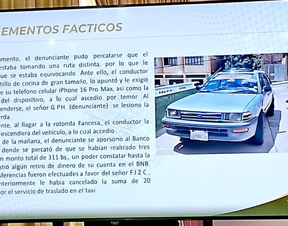 “Una vez formalizada la denuncia, el personal del grupo DACI –cuyo trabajo quiero destacar por su constante alerta– procedió con la búsqueda. Se logró determinar que este sujeto, Franz Zeballos, ya tenía otras denuncias por robo”, manifestó el Director Departamental de la Felcc.